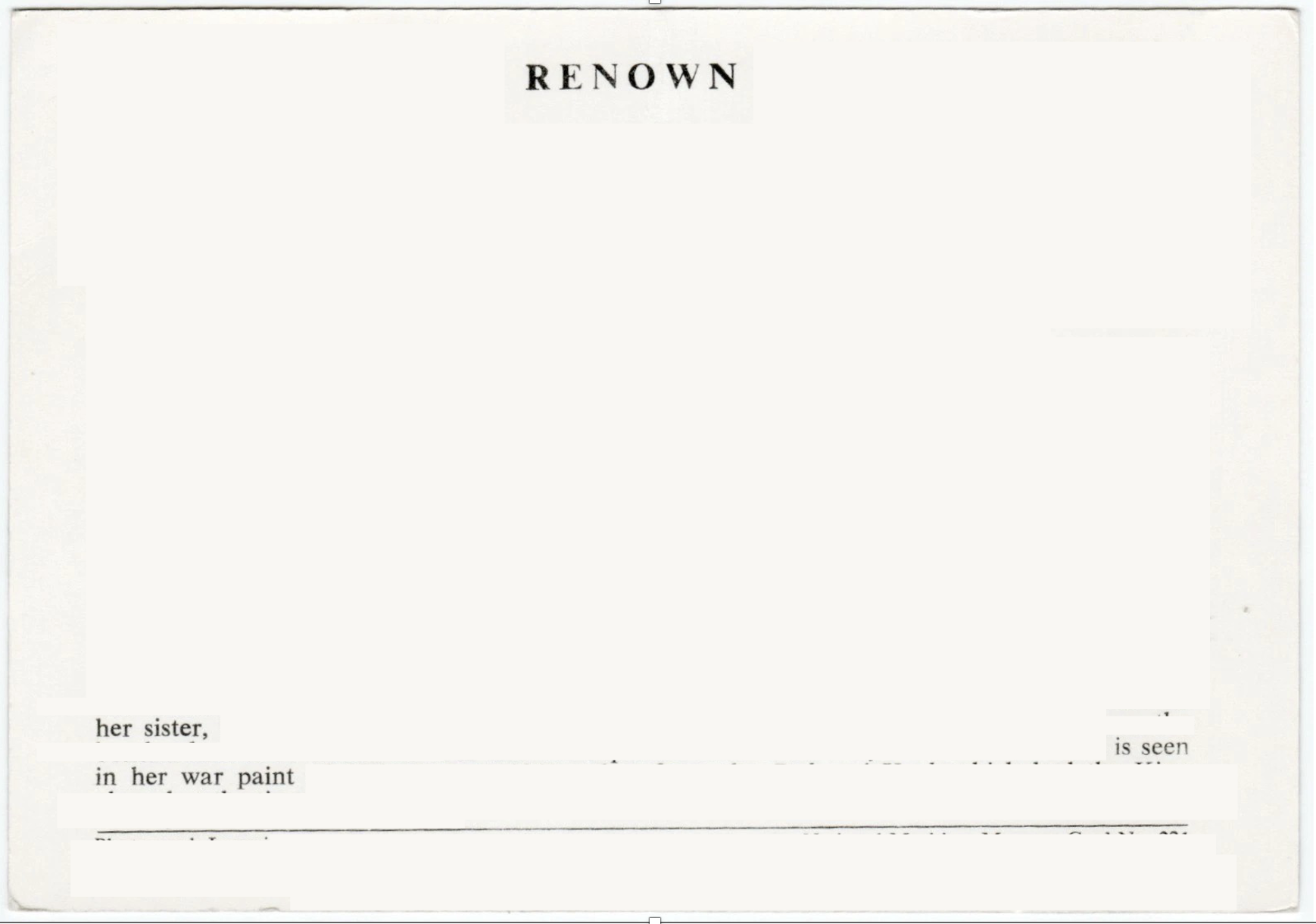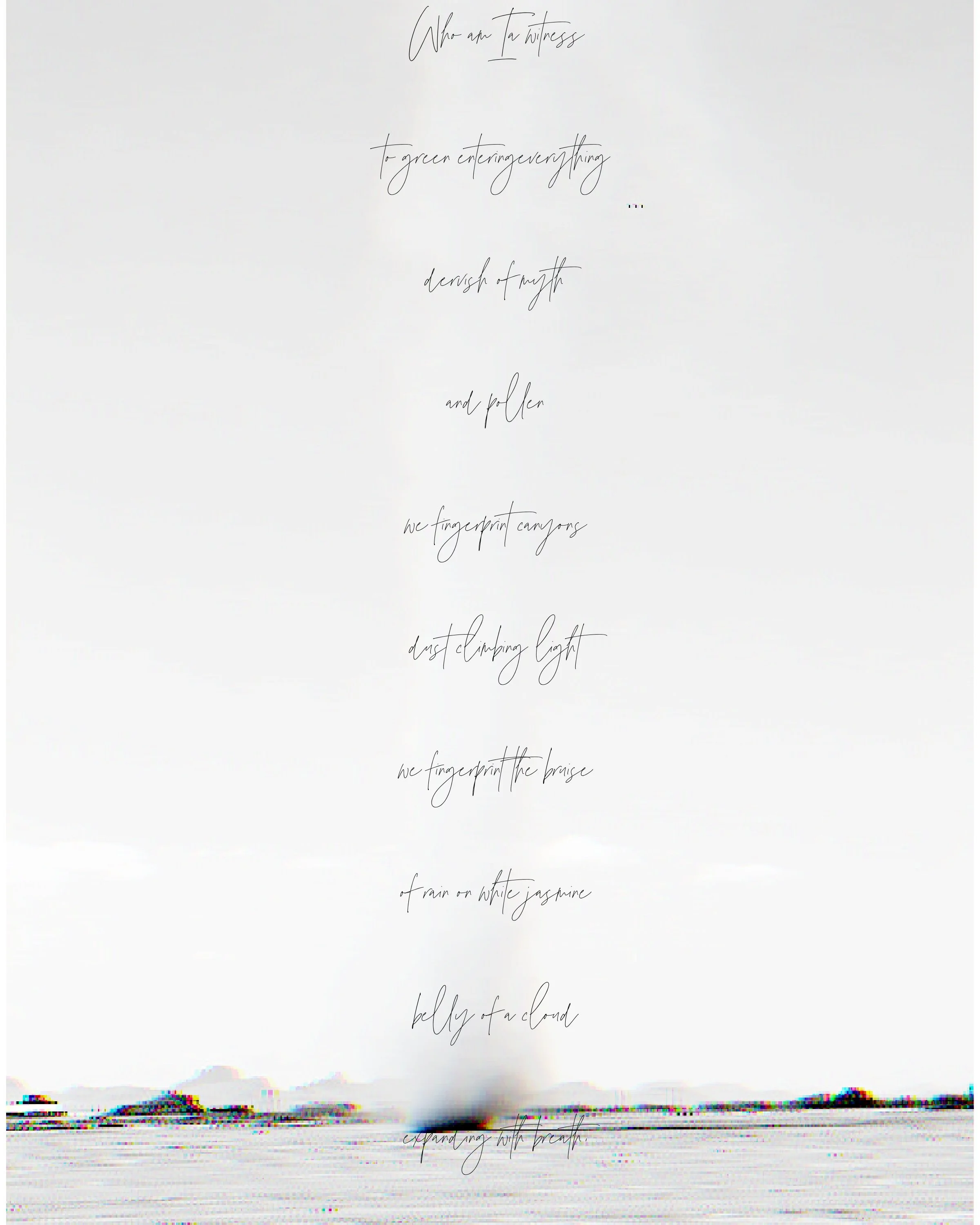 [1] The Brisbane Line was a division designed in WW2 wherein the whole of the northern region of Australia would be abandoned in the face of catastrophic attack. Comforting for one living in Far North Queensland right?! I don’t want so plainly to announce my who and where, but suffice it, I am both American and Australian. Though in both countries, I’m confident, I would be most obviously considered as an American. I will try not to judge this. To introduce myself to one “why” I am here in this situation of 30/30, I’d like to thank Tupelo for their support. Tupelo kindly published some visual poems some years ago: